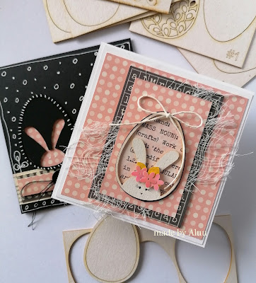 Cześć,mam dla Was kartki wielkanocne ale inne niż tradycyjne.Zrobione wg tablicy Bingo w wyzwaniu na blogu Rapakivi z najnowszymi tekturkami-jajkami.